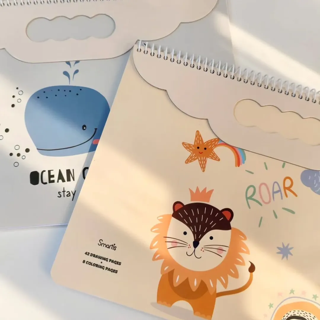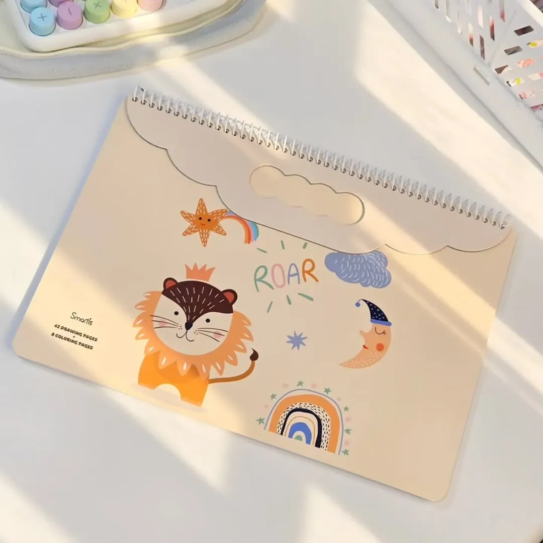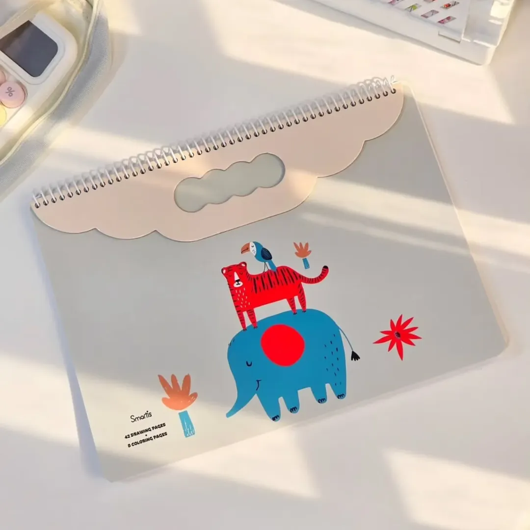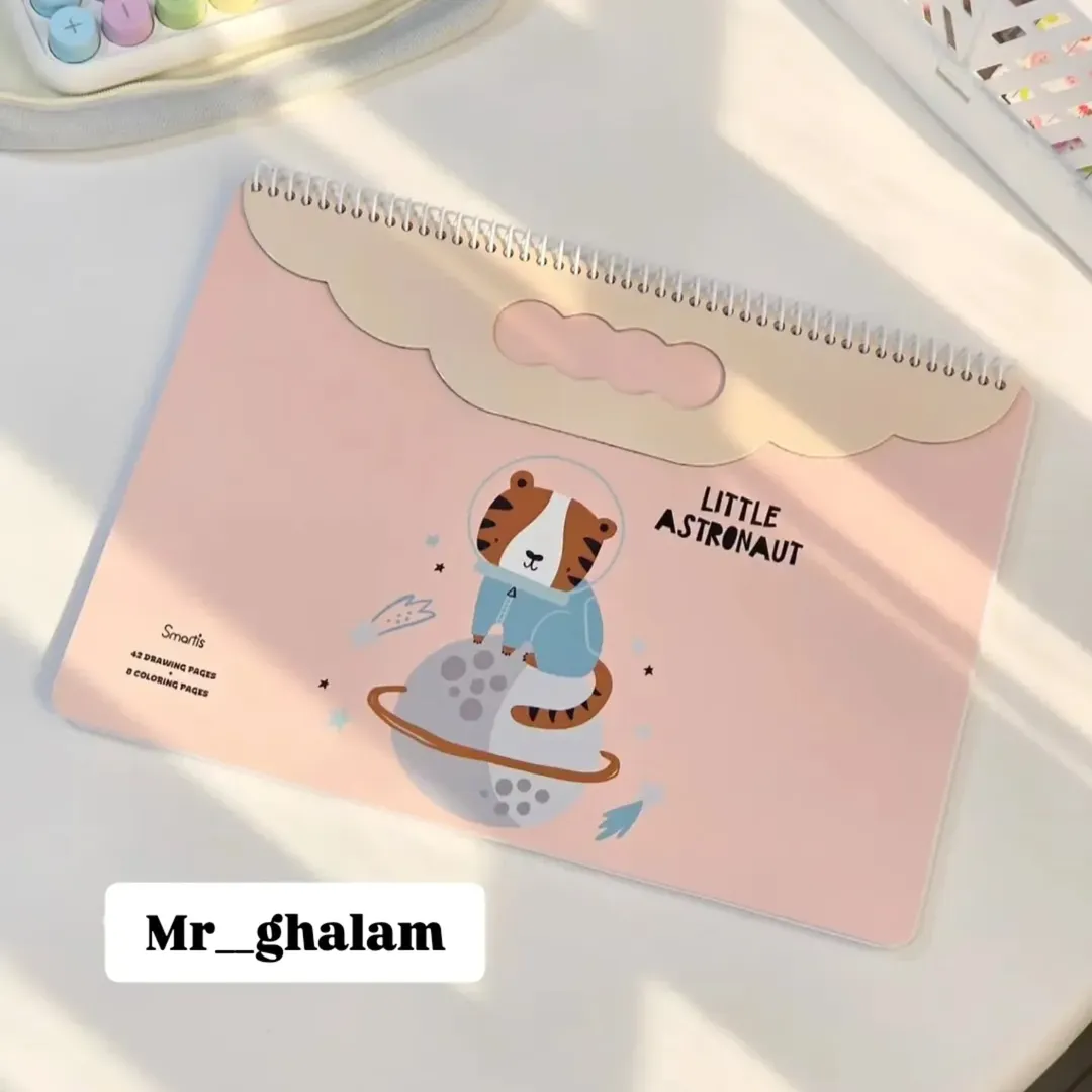 دفتر نقاشی جدید با طرحهای کیوت، جلد دوطرف لمینت شده و دارای دسته برای حمل آسان. سیمی و شامل 8 صفحه نقاشی.
